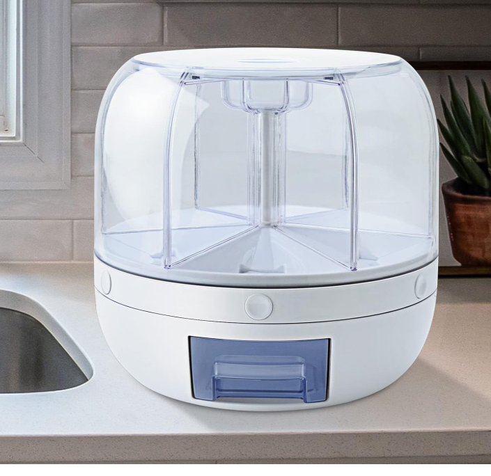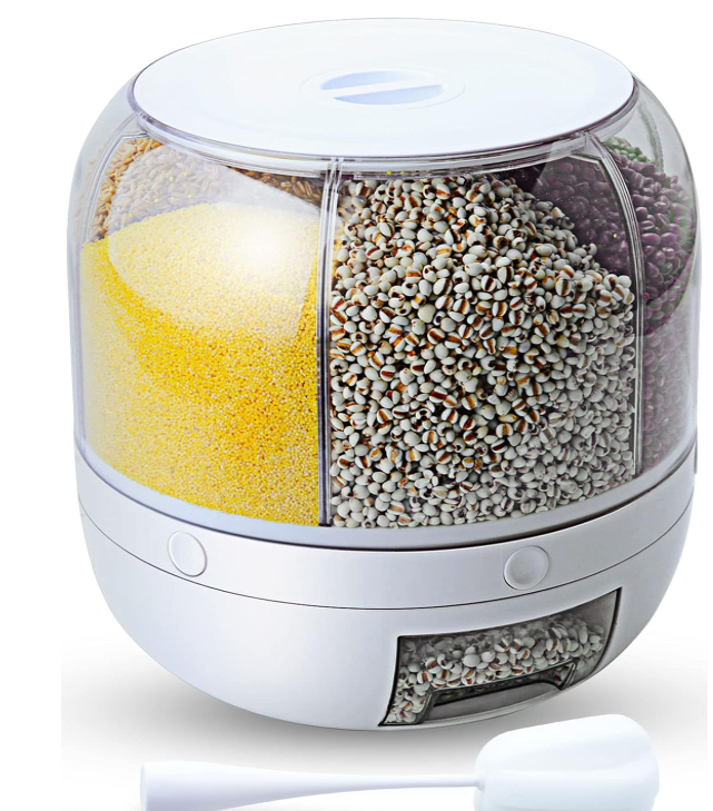 • مناسب للحبوب الصغيرة مثل الأرز والفاصوليا. • يوفر مساحة بتخزين 6 أنواع من الحبوب في حاوية واحدة. • تصميم دوار 360° للوصول السهل لكل نوع من الحبوب. • سعة كبيرة 8.2 كوارت لتخزين كميات كبيرة. • زر خاص لكل فتحة لتفريغ الحبوب بسهولة. • مصنوع من مادة غذائية آمنة وخالية من BPA. • قوي ومتين للاستخدام طويل الأمد. • يساعد على تنظيم الحبوب والحفاظ على نظافتها. • تصميم مدمج يوفر مساحة في المطبخ. • مثالي لتقليل فوضى الأكياس في المخزن. • تفاصيل سريعة: • اللون: متعدد الألوان • المادة: بلاستيك • السعة: 9 لتر • أبعاد المنتج (الطول × العرض × الارتفاع): 28.5 × 28.5 × 26.9 سنتيمتر • سهّلت حياتك مع موزع الحبوب الدوّار بـ 6 أقسام. بس لف واختر اللي تحتاجه بكل سهولة! • رتّب مطبخك بذكاء مع موزع الحبوب 360 درجة، حافظ على نظافة وتنظيم حبوبك! • توفير للمساحة وترتيب للحبوب بموزع واحد، يناسب مطبخك بشكل مثالي